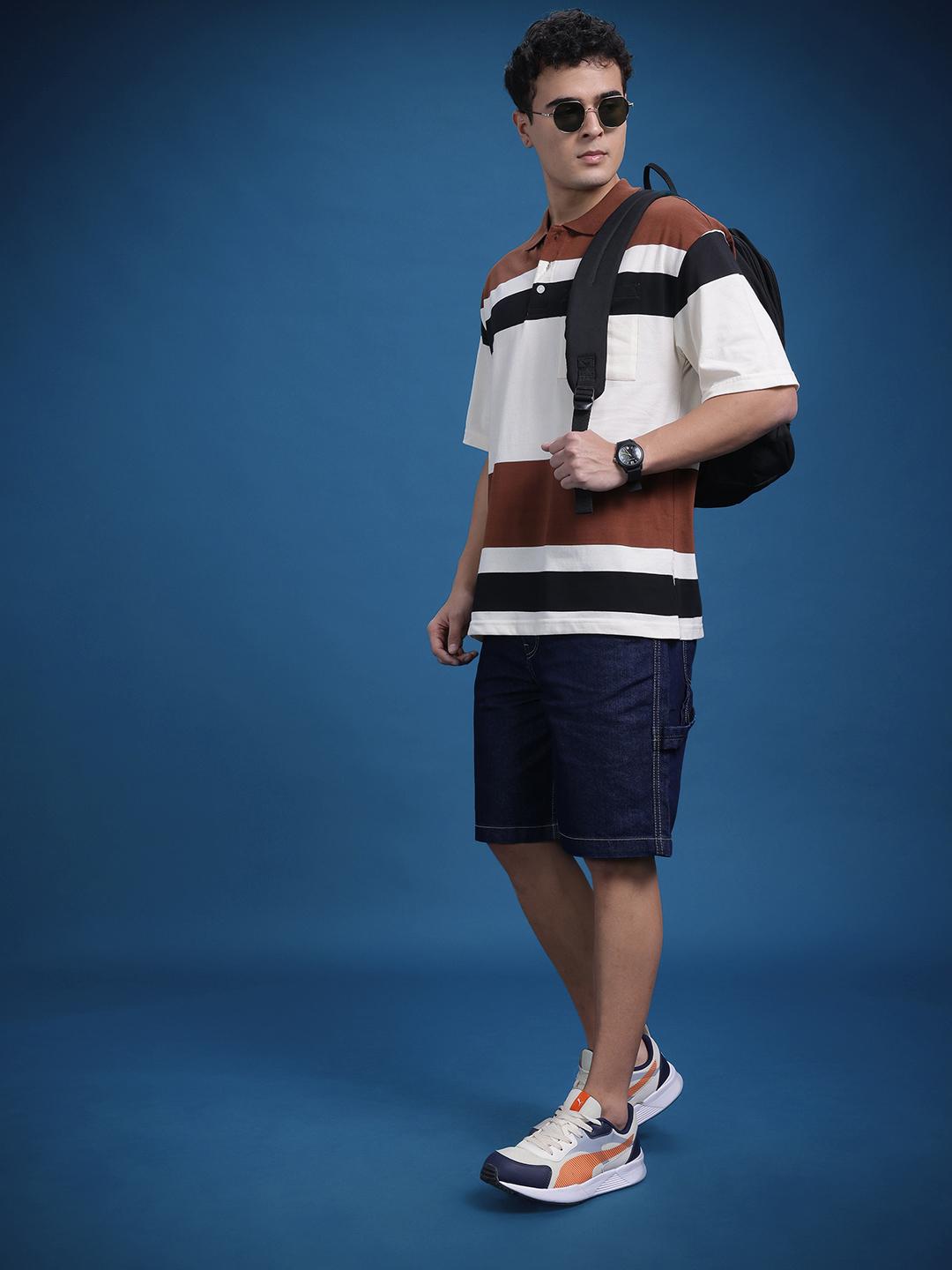 The Life Co. Striped Polo Collar Drop-Shoulder Sleeves T-shirt